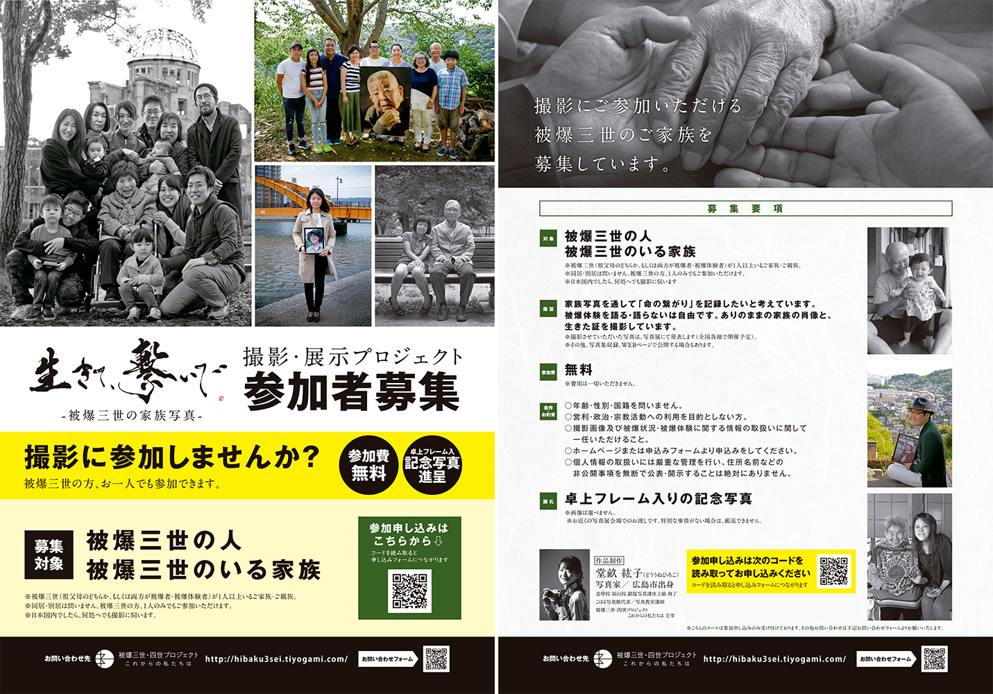 撮影にご参加いただける「被爆三世の家族」を募集しています。